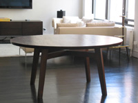 Top is 58 inches in diameter providing ample seating. Both to and base, made of solid walnut, are lightly distressed.