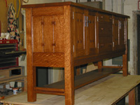 Details include inlaid butter-fly joined door panels, through tenons, and mitered quarter-sawn legs,